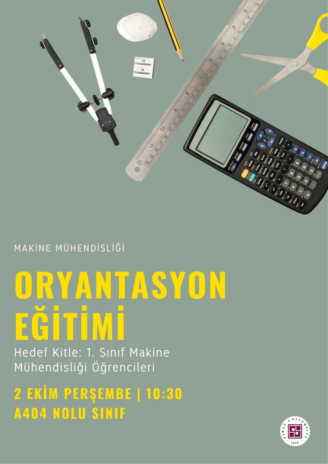 Bölümümüz 1 sınıf öğrencilerine yönelik bir oryantasyon eğitimi düzenlenecektir.Tüm öğrencilerimizin eğitime katılmaları önemle rica olunur.
